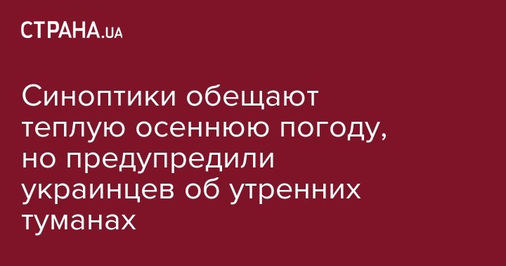 В четверг, 13 сентября, в Украине ожидается теплая осенняя погода с туманом. В столице возможен небольшой дождь. Об этом сообщила синоптик Наталка Диденко на своей странице в социальной сети Facebook.