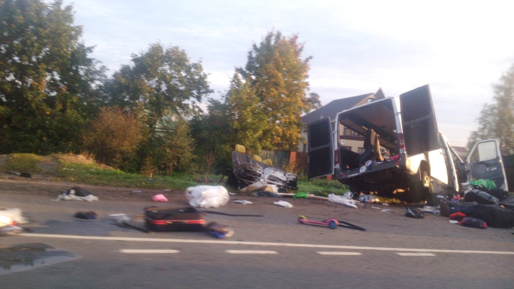 Около 01:00 15 сентября на 76-ом километре дороги "Нарва" в Ленинградской области (РФ) произошло ДТП: столкнулись фура DAF и микроавтобус Mercedes Sprinter.