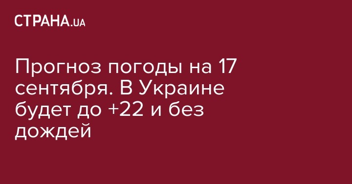 Прогноз погоды на 17 сентября. В Украине будет до +22 и без дождей