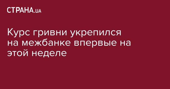 Курс гривни на межбанковском валютном рынке в среду укрепился до 28,0825 грн/$1 с 28,15 грн/$1 по итогам предыдущего рабочего дня, сообщили агентству "Интерфакс-Украина" дилеры коммерческих банков. Котировки гривни к окончанию торгов составили 28,07-28,095 грн/$1. По данным Нацбанка, справочное значение курса гривни к доллару в среду укрепилось до 28,1257 грн/$1 с 28,1525 грн/$1.