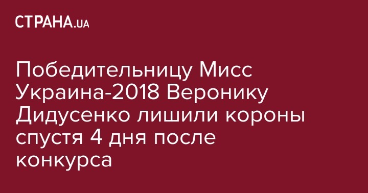 Оргкомитет Национального конкурса красоты дисквалифицировал и лишил короны его победительницу 23-летнюю Веронику Дидусенко, которая получила титул "Мисс Украина-2018" 20 сентября, и должна была представить нашу страну на конкурсе "Мисс-Мира-2018".