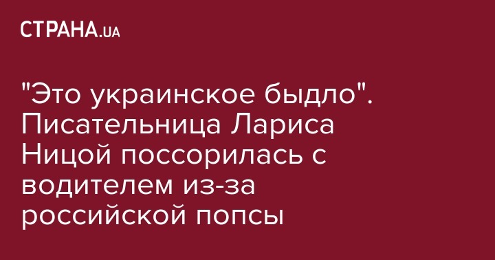 Скандальная писательница Лариса Ницой поскандалила с водителем, который вез ее на Форум издателей во Львов. Водитель, по ее словам, практически вынуждал их всю дорогу слушать российскую попсу. Более того, ее возмутил тот факт, что на вполне резонные замечания мужчина потребовал от нее извинений за повышение голоса. Об инциденте Ницой рассказала на своей странице в Facebook.