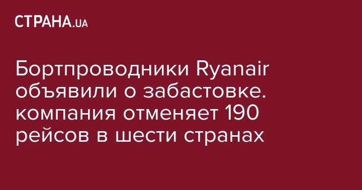 На эту пятницу, 28 сентября, бортпроводники популярной лоукост-комании Ryanair объявили о проведении забастовки в шести европейских странах - Испании, Италии, Бельгии, Нидерландах, Португалии и Германии.