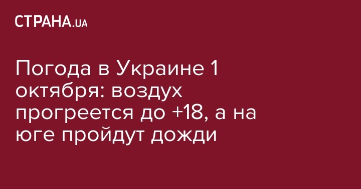 В понедельник, 1 октября, в Украине ожидается переменно облачная погода, в основном без осадков. Лишь на юге страны пройдут небольшие кратковременные дожди. Ночью температура воздуха опускалась до +3 градусов, а днем синоптики прогнозируют температуру от +17 до +22 градусов. Об этом сообщает Укргидрометцентр.