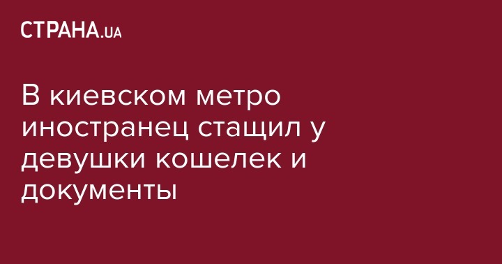 В субботу, 4 июня, на одной из станций метро в Киеве неизвестный похитил у 25-летней девушки кошелек и документы. Как сообщает пресс-служба Главного управления Нацполиции в Киеве, подозреваемым оказался 34-летний иностранец.