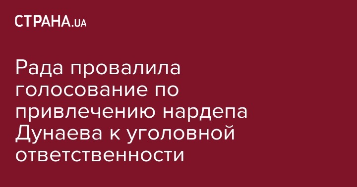 Верховная Рада Украины не удовлетворила просьбу Генеральной прокуратуры о снятии депутатской неприкосновенности с нардепа от Оппозиционного блока Сергея Дунаева, которого подозревают в подаче недостоверной декларации.  "За" проголосовали 125 депутатов при 226 необходимых.