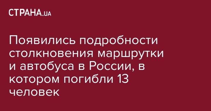 13 человек погибли в результате столкновения маршрутки и рейсового автобуса, которое произошло в России под Тверью. Об этом сообщает телеграм-канал Mash.