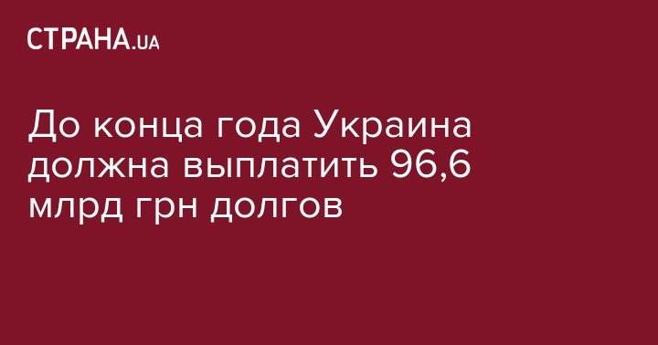 В частности, за три месяца с октября по декабрь, Украина должна выплатить по внутреннему долгу 79,35 млрд грн, а по внешним - 17,25 млрд грн.