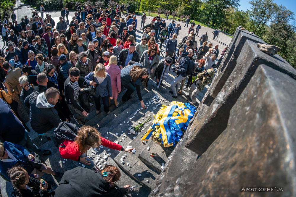 Участники Марша прошли пешком путь от места, где сегодня расположен кинотеатр "Киевская Русь" до Бабьего Яра, повторив маршрут тех, кто 29 и 30 сентября 1941 года прошел его в последний раз.