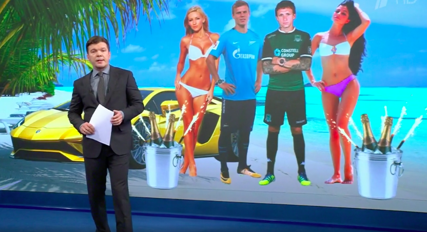 Первый канал снял в вечерних новостях о футболистах большой сюжет, который начинался таким монологом ведущего Кирилла Клейменова: