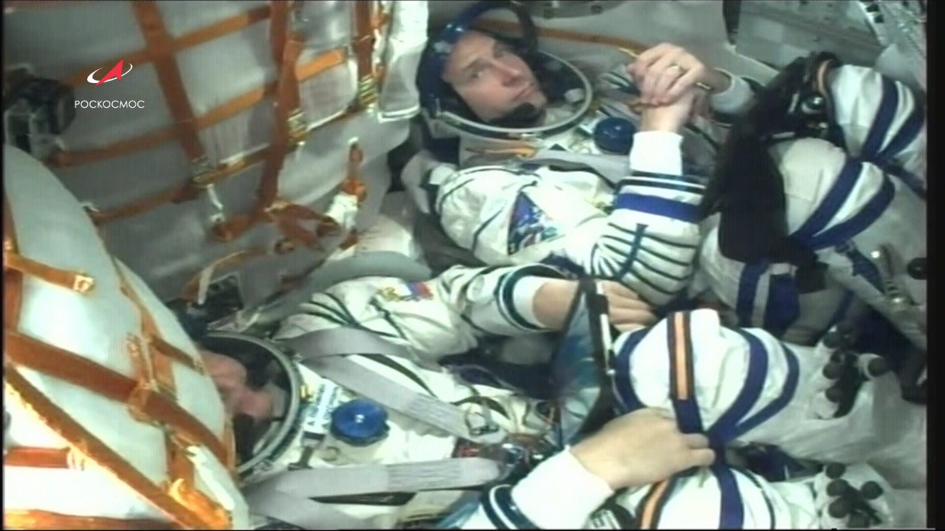 Экипаж корабля занял свои места в ложементах Фото: twitter.com/roscosmos