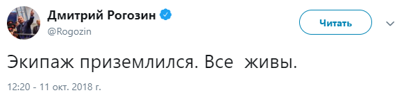 Сегодня, 11 октября, в России произошло очередное космическое ЧП. Экипаж пилотируемого корабля "Союз МС-10" совершил аварийную посадку после того, как у ракеты "Союз-ФГ" отказали двигатели. Космонавты живы. Об этом сообщил глава госкорпорации "Роскосмос" Дмитрий Рогозин в Twitter.