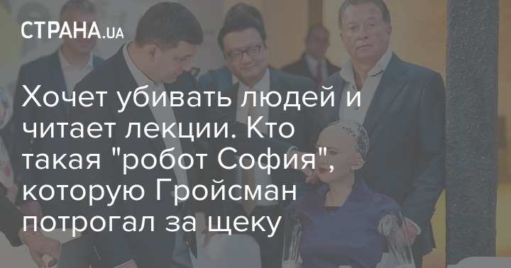 Премьер-министр Украины Владимир Гройсман 11 октября встретился с человекоподобным роботом Софией. Он задал ей вопрос, что она знает об Украине. София ответила, что у нас - четверть всего чернозема мира, самый большой в мире самолет "Мрия", самую первую конституцию также написали в 1710 году в Украине. А композитору Николаю Леонтовичу принадлежит известное музыкальное произведение "Щедрик".