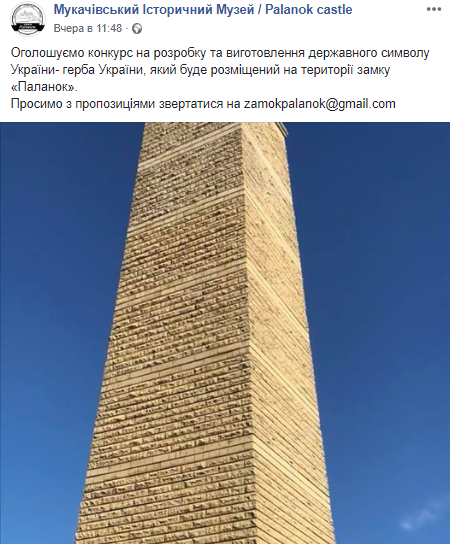 В музее объявили конкурс на разработку и изготовление государственного символа Украины - ее герба. И хотя в сообщении указано лишь, что он будет располагаться на территории замка "Паланок", очевидно, что герб должен заменить венгерского орла, который стоит на постаменте рядом с музеем. Об этом свидетельствует хотя бы то, что сообщение о конкурсе проиллюстрировано этим самым постаментом.