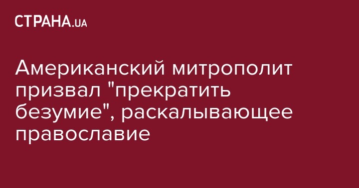 Американский митрополит призвал "прекратить безумие", раскалывающее православие