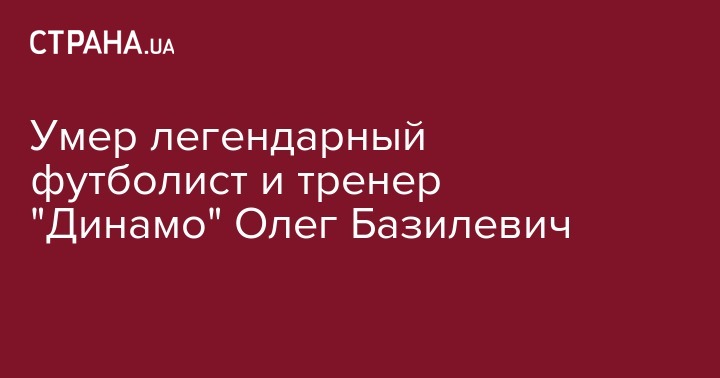 Легендарный футболист и тренер киевского "Динамо" Олег Базилевич ушел из жизни в 80 лет в Киеве. Об этом сообщает УНИАН. Базилевич долгие годы боролся с тяжелым недугом - болезнью Паркинсона.