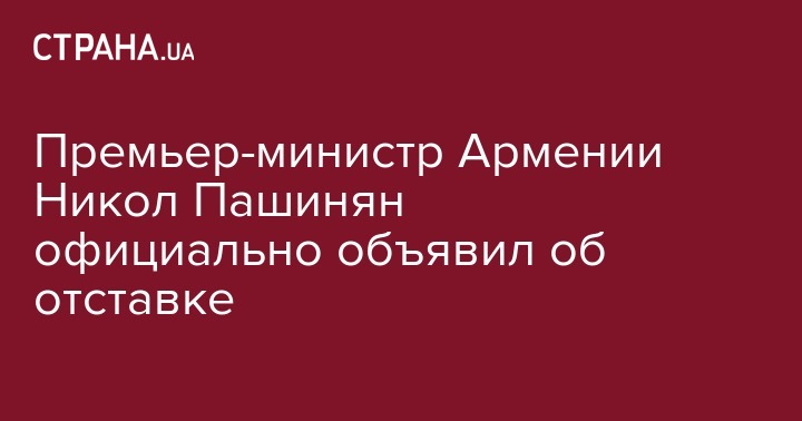 Премьер-министр Армении Никол Пашинян, который на прошлой неделе уже заявлял о намерении уйти в отставку, официально объявил о ней. Об этом он сказал в прямом эфире Общественного телевидения страны, пишет ТАСС.