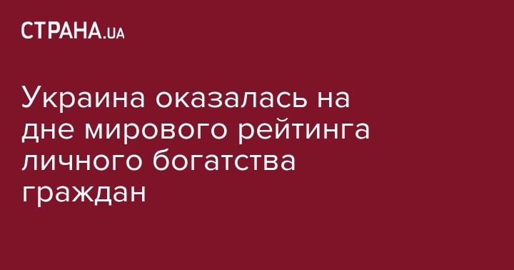 В этом году Украина со 1563 долларами ежегодного дохода на одного взрослого украинца заняла 123-е место из 140 стран мира в рейтинге личного богатства граждан. Об этом свидетельствуют результаты ежегодного отчета о мировом благосостоянии Global Wealth Report, подготовленного швейцарским финансовым конгломератом Credit Suisse.