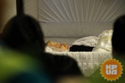 Церемония прошла в помещении МЦКИ "Октябрьский Дворец" по адресу Аллея Героев Небесной Сотни, 1. Простится с артисткой пришло множество людей, от подростков, до пожилых людей. Особенно много слез пролили женщины, которые горевали по погибшей актрисе. К гробу возложили множество цветов.
