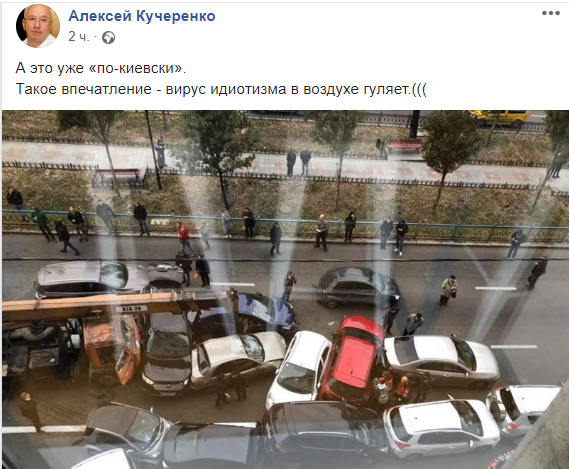 "А это уже "по-киевски". Такое впечатление - вирус идиотизма в воздухе гуляет.(((", - написал он.