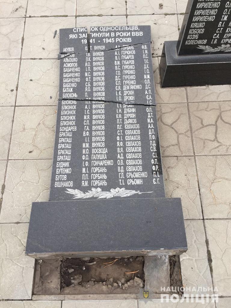 На Харьковщине вандалы повредили мемориальный комплекс погибшим в годы Второй мировой войны. Инцидент произошел 22 октября в селе Циркуны. Об этом сообщается на сайте ГУ Нацполиции в Харьковской области.