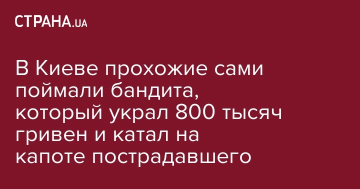 В Киеве прохожие сами поймали бандита, который украл 800 тысяч гривен и катал на капоте пострадавшего