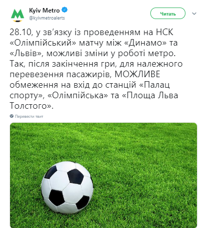 "В связи с проведением на НСК" Олимпийский "матча между" Динамо "и" Львов ", возможны изменения в работе метро", - говорится в сообщении.