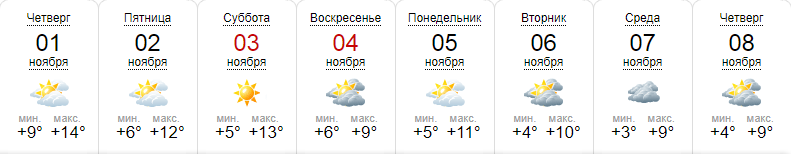 Фото: Прогноз погоды в Киеве на первую неделю ноября от сайта Sinoptik