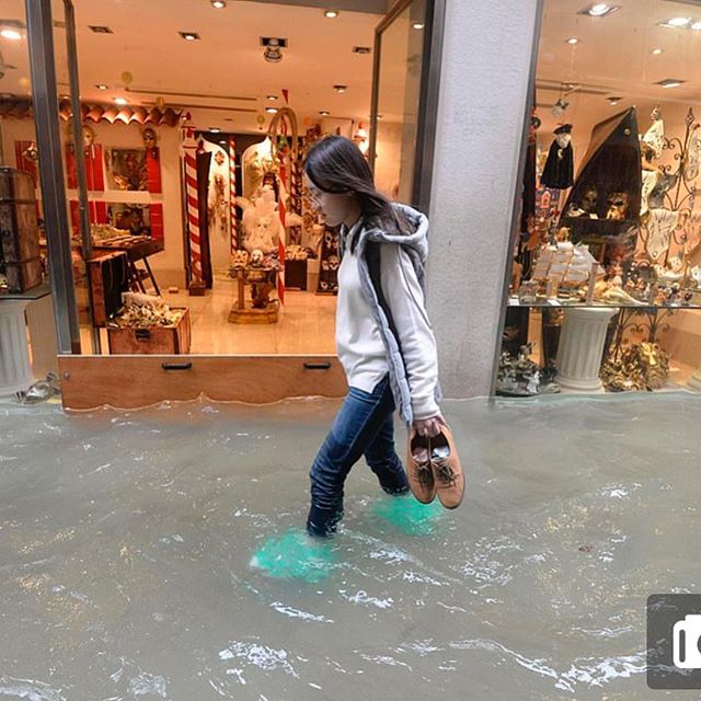 Оказавшиеся в это время в Венеции туристы активно делятся в соцсетях фото и видео с результатами потопа.