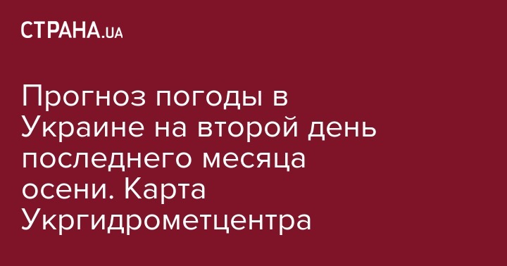 Прогноз погоды в Украине на второй день последнего месяца осени. Карта Укргидрометцентра
