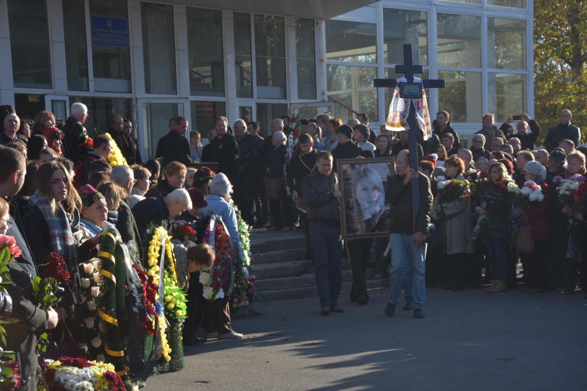 Церемония прощания с Екатериной Гандзюк происходила во Дворце молодежи и студентов. По разным оценкам, с активисткой пришли попрощаться от 500 до тысячи человек.