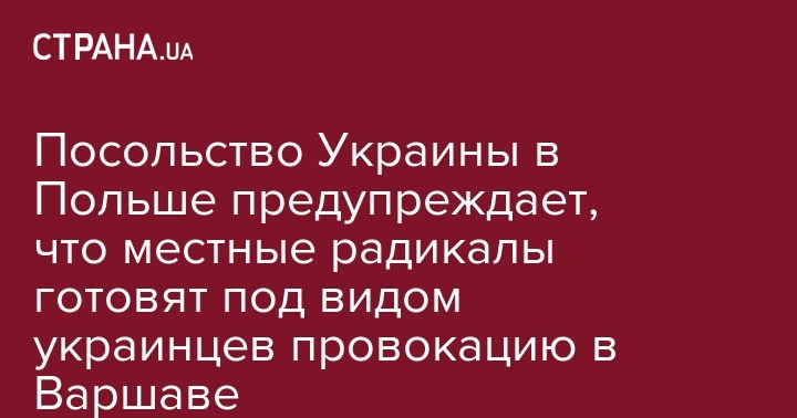 По данным посольства, провокации могут произойти в Варшаве 11 ноября, во время празднования 100-летия восстановления Независимости Польши. Местные радикалы намерены проводить компрометирующие акции, прикидываясь при этом украинскими националистами.