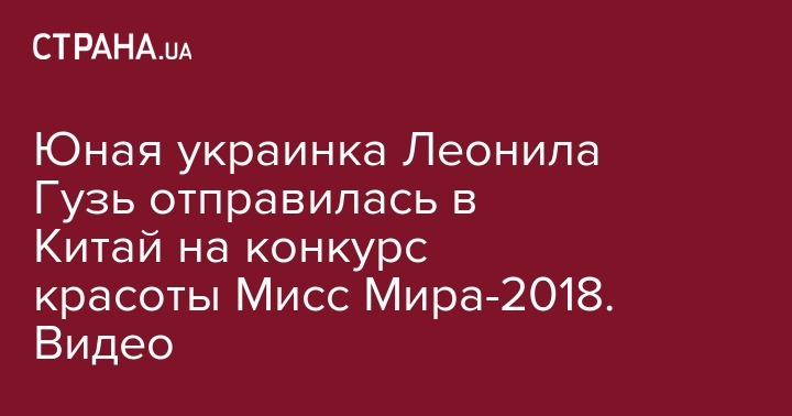 19-летняя Леонила Гузь сегодня вылетела в Китай представлять Украину на конкурсе "Мисс Мира-2018".
