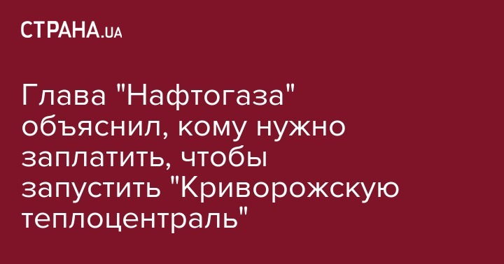 Глава "Нафтогаза" объяснил, кому нужно заплатить, чтобы запустить "Криворожскую теплоцентраль"