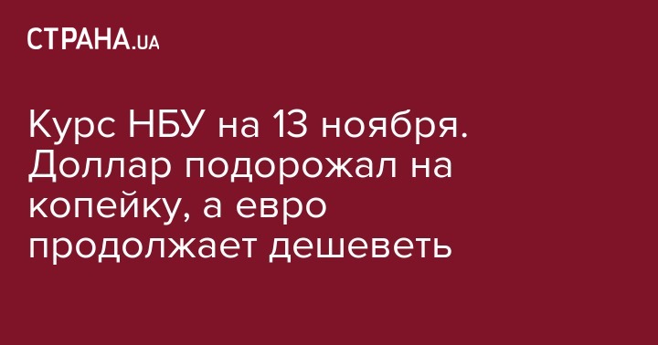 Курс НБУ на 13 ноября. Доллар подорожал на копейку, а евро продолжает дешеветь