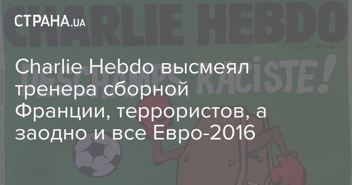 Свежий номер французского журнала Charlie Hebdo появился в продаже вчера, 8 июня. И как всегда журнал полон скандалов. На обложке помещен заголовок: "Дешам, расист!" и изображен гроб, играющий в футбол. Заголовок карикатуры -"Он не выбрал Мухаммеда Али на Евро-2016".