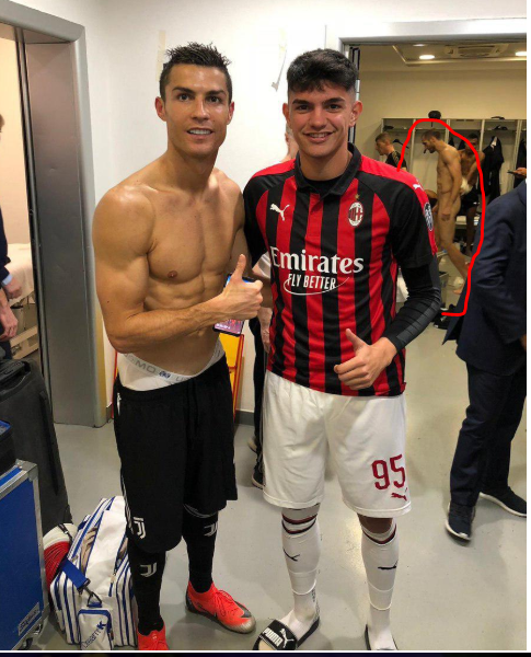 Обнаженный защитник "Ювентуса" Джорджо Кьеллини случайно попал на фото 18-летнего игрока "Милана" Рауль Белланова. Снимок был сделан в раздевалке после матча. Об этом сообщает footballua.tv.