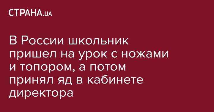 В России школьник пришел на урок с ножами и топором, а потом принял яд в кабинете директора