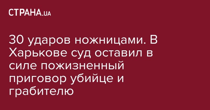 Ранее приговор о пожизненном наказании вынес Купянский районный суд. "Суд первой инстанции признал мужчину виновным в совершении преступлении, предусмотренных п.6 ч.2 ст.115 (умышленное убийство), ч.2,3 ст.185 (кража), ч.4 ст.187 (разбой) Уголовного кодекса Украины", - говорится в сообщении.