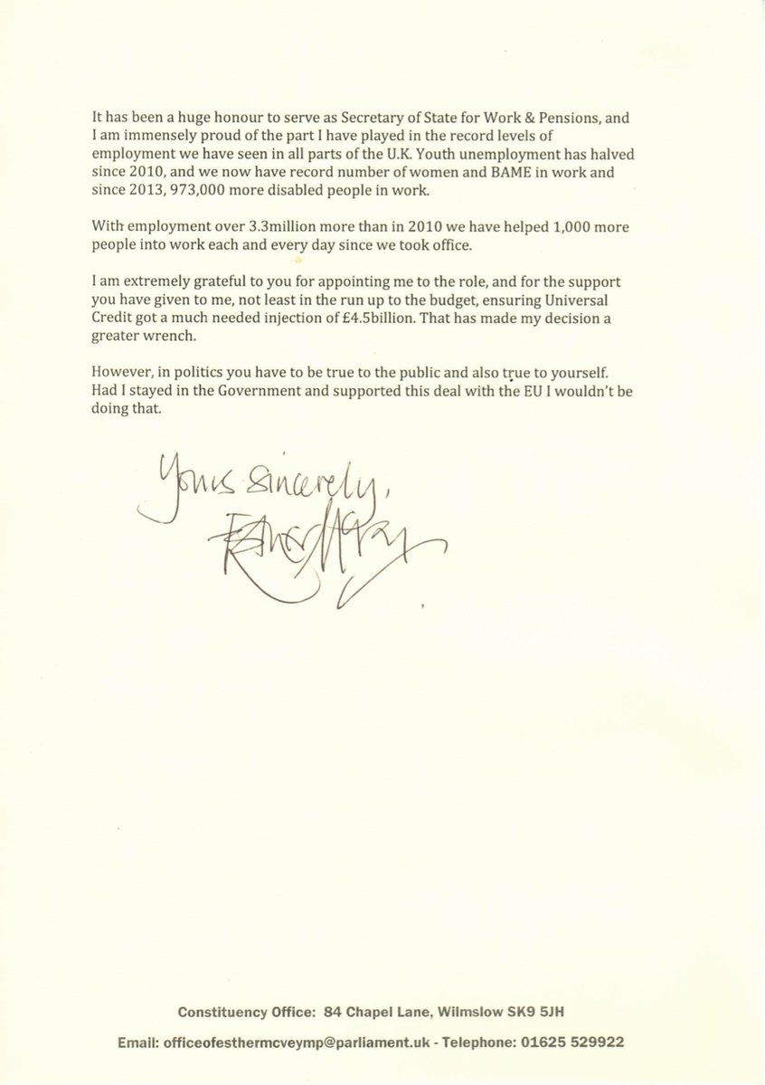 Об этом в четверг, 15 ноября, чиновница сообщила на своей странице в твиттере. По словам Маквей, утром она сообщила премьер-министру, что уходит из правительства Великобритании.