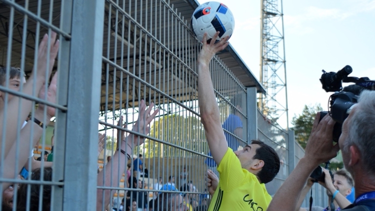 Сборная Украины забросала болельщиков мячами после тренировки
