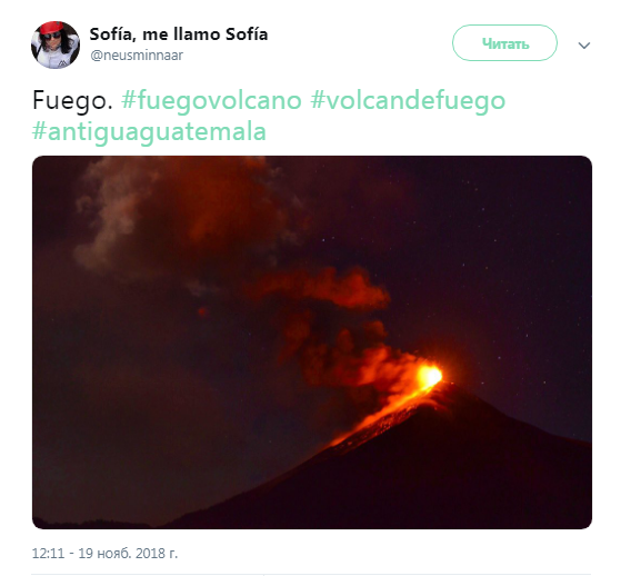 Вулкан Огня является одним из самых активных в Центральной Америке. Он расположен на западе Гватемалы на высоте в 3763 метра, относится к тихоокеаническому вулканическому поясу и очень ативен. Первый раз в 2018 году он проснулся 12 апреля.
