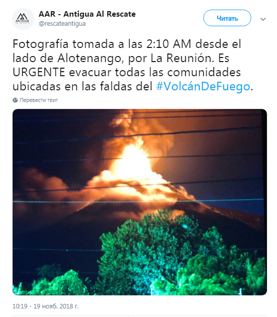Отметим, что именно извержение Фуэго в июле стало причиной гибели почти 200 человек. На данный момент наблюдаются взрывы вулкана на высоте 3763 метра. Раскаленные камни и пепел начали извергаться в небо и катиться по склону.