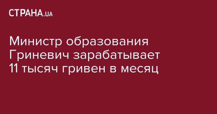 В мае министр образования Лилия Гриневич получила 11 256,19 грн. заработной платы. Об этом сообщают Украинские новости.