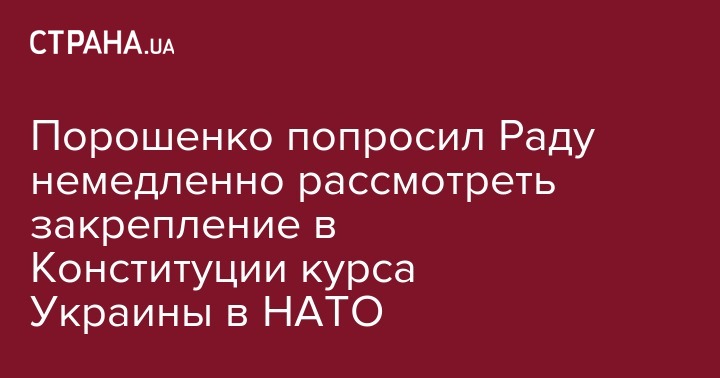 Президент Украины Петр Порошенко просит Верховную Раду безотлагательно рассмотреть вопрос о внесении изменений в Конституцию касаемо европейской и евроатлантической интеграции страны после соответствующего решения, принятого Конституционным судом Украины 22 ноября. Об этом написал глава государства на своей странице в Facebook.