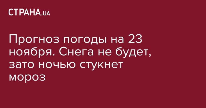 В пятницу, 23 ноября, благодаря антициклону Constantin, который продолжает господствовать по всей территории страны, в Украине будет прохладно, но сухо. Об этом свидетельствует прогноз, опубликованный на официальном сайте Укргидрометцентра