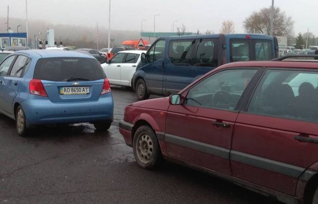 В автомобильной очереди, которая растянулась до магазина "Duty Free" с украинской стороны, ежеминутно растет напряжение. Некоторые пытаются прорваться вперед, тогда начинаются крики и нецензурная брань.