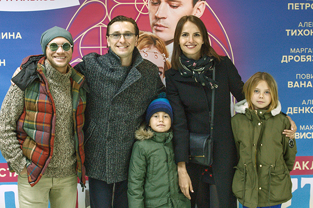 Дмитрий Хрусталев, Сергей Безруков с детьми и женой Анной Матисон