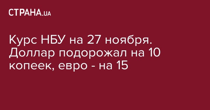 Таким образом, официальный курс НБУ на вторник, 27 ноября, выглядит следующим образом: