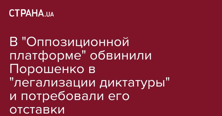 В связи с этим "Оппозиционная Платформа - За Життя" потребовала немедленно прекратить "режим диктатуры Порошенко" и потребовала его отставки "за провальное управление страной и не способность установить мир в Украине".